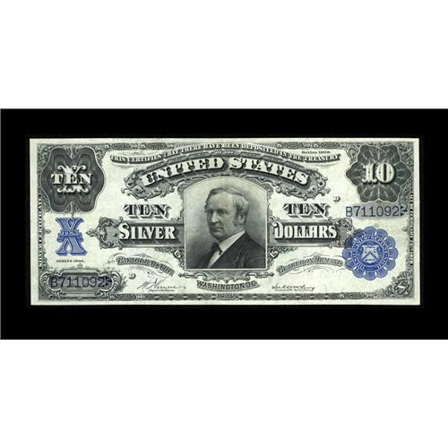 <B>Fr. 303 $10 1908 Silver Certificate Extremely Fine.</B></I> The margins frame this three-fold EF perfectly. The seal, Roman numeral X, and serial numbers are all still bold and the paper quality is excellent. The open spaces of paper on the the back are bright and contrast nicely against the ornate green design elements.<BR><I>From The Bill and Kathy Stella Currency Collection</B></I><BR><BR><b>Shipping:</b> Coin/Currency (<a target="_blank" href="http://www.heritageauctions.com/common/shipping.php">view shipping information</a>)