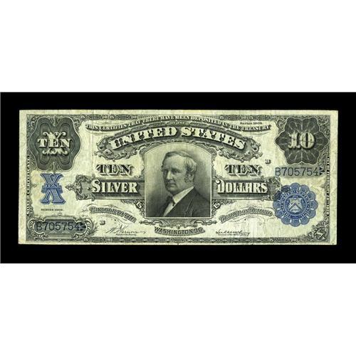 <B>Fr. 303 $10 1908 Silver Certificate Fine.</B></I> Of the three Friedberg numbers for this design, this number is the most elusive of the trio. This Tombstone is also problem free for the grade.<BR><BR><b>Shipping:</b> Coin/Currency (<a target="_blank" href="http://www.heritageauctions.com/common/shipping.php">view shipping information</a>)