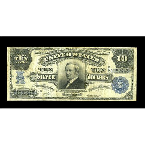 Fr. 303 $10 1908 Silver Certificate Fine. This lightly Fr. 303 $10 1908 Silver Certificate Fine.