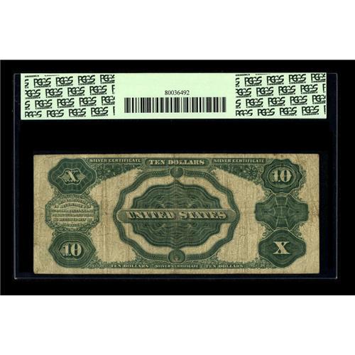 <B>Fr. 304 $10 1908 Silver Certificate PCGS Fine 15.</B></I> A solid Blue Seal Tombstone, with strong ink color and no problems save for the normal circulation soil that one would expect for this grade. This is the last Friedberg number for the Tombstones with the blue "X" counter.<BR><BR><b>Shipping:</b> Coins & Currency (<a target="_blank" href="http://www.heritageauctions.com/common/shipping.php">view shipping information</a>)