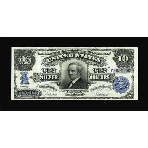 <B>Fr. 304 $10 1908 Silver Certificate Very Fine-Extremely Fine.</B></I> This is an attractive Tombstone and it is ideal for a type collection. The inks are dark and the paper is bright.<BR><BR><b>Shipping:</b> Coins & Currency (<a target="_blank" href="http://www.heritageauctions.com/common/shipping.php">view shipping information</a>)