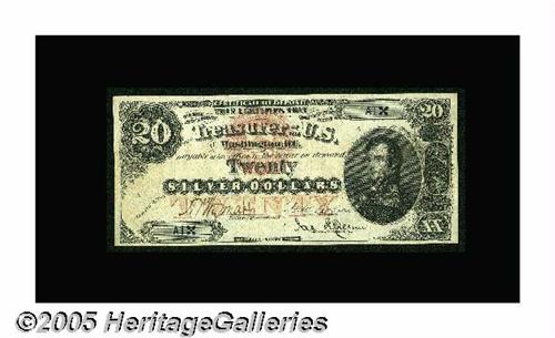 <B>Fr. 306b $20 1878 Silver Certificate Extremely Fine.</B></I> Without a doubt, the most significant serial number one note that we have ever had the opportunity of offering. This note is very likely the first Silver Certificate ever produced, and it is one of only two examples of its Friedberg number in existence. The magnificent serial number 1 Fr. 1180 that we sold in February realized $241,500 based solely on its serial number 1 status, as it is very far from a rare Friedberg number with more than 135 examples known. This note, while lacking some of the physical flash of that technicolor twenty, is from an infinitely more collectible series. It is one of the few notes of any denomination bearing a third hand-signed signature -- in this case, that of A.U. Wyman, who previously served as Treasurer. The note is handsome as well as rare. It is very well margined, the colors are strong, and it is printed on the paper with the blue anti-counterfeiting stain across the bottom and the linked repetitive USUSUS watermark. The note has a single, utterly undetectable restoration immediately behind the head of naval hero Stephen Decatur. When last at auction several years ago, when the market for incredibly important notes was at its lowest point, this note realized $132,250. That number tonight is about to appear to have been one of the best buys in numismatics over the last half decade.