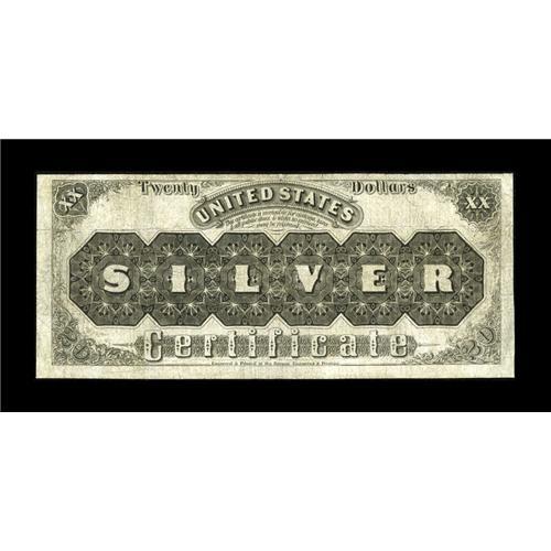 <B>Fr. 309 $20 1880 Silver Certificate Fine.</B></I> There are a few repaired edge splits, but this scarce number has retained good color and is quite well margined. About fifty examples are known in all grades combined. These Stephen Decatur 1880 Silver Certificates have the striking dark brown back that distinguishes this entire series, the only series of U.S. currency that used this color. It's a rather rare number in any grade and very rare in high grade, with not a single uncirculated example reported.<BR><I>From The Collection of Greg Southward</B></I><BR><BR><b>Shipping:</b> Coins & Currency (<a target="_blank" href="http://www.heritageauctions.com/common/shipping.php">view shipping information</a>)