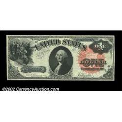 Fr. 31 $1 1880 Legal Tender Choice About New. A beautiful example of a rather scarce type. Just under 100 examples of Fr. 31 are known, and this is a one-number type. It's the only 1880 Legal with a large red seal and blue serial numbers. It's a lovely note, separated from the Gem grade by a light center fold and a tiny corner tip fold. A challenging piece to find in this grade. Important notice: We expect to be auctioning lots at the rate of 200-250 per hour. Sometimes eBay Premier live bid software cannot keep up with that pace, so we strongly recommend that you place a realistic proxy bid now as insurance to avoid disappointment. Also please note that all Heritage/CAA lots purchased through eBay Premier carry a 20% Buyer's Premium. Please make sure you read the Terms and Conditions.