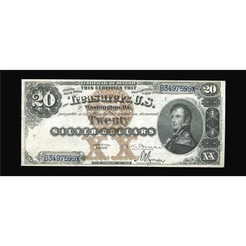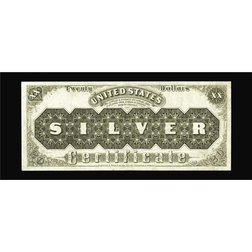 <B>Fr. 311 $20 1880 Silver Certificate Extremely Fine-About New.</B></I> This note was sold by us once before back in May of 2000 where it was described as Choice Extra Fine. Not much about the note has changed since then as the margins are still decent and color attractive. The back certainly is well centered on this pleasing Decatur specimen.