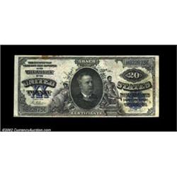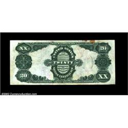 Fr. 321 $20 1891 Silver Certificate About New. The note has two rust stains in the top margin that bleed through to the back. It's a well margined, original piece, with good ink color, although the paper is not fully bright. Important notice: We expect to be auctioning lots at the rate of 200-250 per hour. Sometimes eBay Premier live bid software cannot keep up with that pace, so we strongly recommend that you place a realistic proxy bid now as insurance to avoid disappointment. Also please note that all Heritage/CAA lots purchased through eBay Premier carry a 20% Buyer's Premium. Please make sure you read the Terms and Conditions.