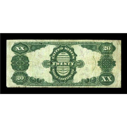 <B>Fr. 321 $20 1891 Silver Certificate Fine.</B></I> Nice edges and paper for the grade save for a couple of small black ink dots on the back.<BR><BR><b>Shipping:</b> Coin/Currency (<a target="_blank" href="http://www.heritageauctions.com/common/shipping.php">view shipping information</a>)