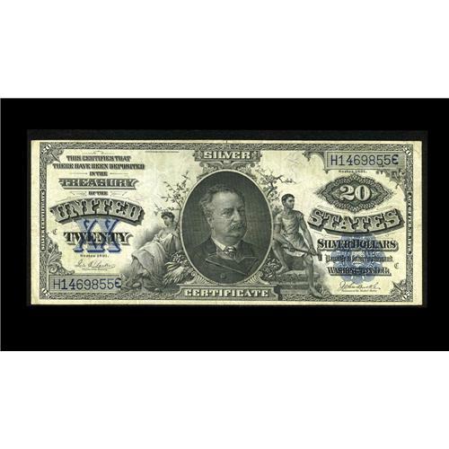 <B>Fr. 321 $20 1891 Silver Certificate Very Fine.</B></I> This bright example for the grade is free of edge tears and pinholes.