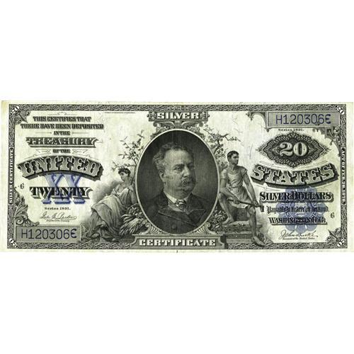<B>Fr. 321 $20 1891 Silver Certificate Very Fine.</B></I> Add pleasing color to the originality of the paper and this note will likely please the successful bidder.