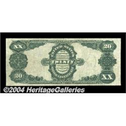 Fr. 322 $20 1891 Silver Certificate Fine-Very Fine. A nice, problem free, evenly circulated note that has retained rather good color. <BR><BR><B>Important notice:</B> Heritage usually auctions material at the rate of 200-250 lots per hour. On some occasions eBay Live bid software or the Internet may not be able to keep up with the pace of the auction. We recommend placing a realistic absentee bid now as insurance to avoid disappointment. Occasionally the auctioneer may eliminate or reject an eBay Live bid, and the auctioneer may also reopen a lot after the close of the eBay live bidding (usually because we missed an audience bid), and may reject your bid even if it shows you as the winning bidder. By bidding via eBay Live, you agree that Heritage may award the lot to another bidder at its sole discretion under the circumstances described above or any other reasonable circumstances. Since eBay bids are not shown to us until we open the lot on the floor, we treat those bids just like floor bids. In most cases the floor responds before the eBay bid is presented to us, due to Internet lag time, so for consistency we have made it a policy that floor bids are always considered first over tie eBay live bids. Also please note that all Heritage lots purchased through eBay Live carry a 20% Buyer's Premium. Please make sure you read the Terms and Conditions before you bid. <BR><BR><B>IMPORTANT ANNOUNCEMENT ABOUT RESERVES:</B> Heritage now divulges all reserves on its web site 7 days before every auction. If you want to know whether the reserve on this lot has been met, and if not, what the reserve amount is, please visit this lot page on the HeritageCoin.com web site, or email: bid@HeritageGalleries.com