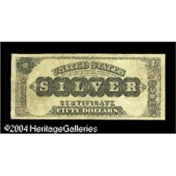 Fr. 326 $50 1880 Silver Certificate Fine. An extrao <B>Fr. 326 $50 1880 Silver Certificate Fine.</B></I> An extraordinarily rare note, and one of only five known examples. It is a solid Fine with no problems save for miniscule edge restorations that do not affect any design areas. None of the five known pieces grade better than Very Fine, and the VF is in a Federal Reserve Bank collection. In its last auction appearance in June, 2001, it brought just over $28,000. It will likely realize a touch more this evening. <BR><BR><B>Important notice:</B> Heritage usually auctions material at the rate of 200-250 lots per hour. On some occasions eBay Live bid software or the Internet may not be able to keep up with the pace of the auction. We recommend placing a realistic absentee bid now as insurance to avoid disappointment. Occasionally the auctioneer may eliminate or reject an eBay Live bid, and the auctioneer may also reopen a lot after the close of the eBay live bidding (usually because we missed an audience bid), and may reject your bid even if it shows you as the winning bidder. By bidding via eBay Live, you agree that Heritage may award the lot to another bidder at its sole discretion under the circumstances described above or any other reasonable circumstances. Since eBay bids are not shown to us until we open the lot on the floor, we treat those bids just like floor bids. In most cases the floor responds before the eBay bid is presented to us, due to Internet lag time, so for consistency we have made it a policy that floor bids are always considered first over tie eBay live bids. Also please note that all Heritage lots purchased through eBay Live carry a 20% Buyer's Premium. Please make sure you read the Terms and Conditions before you bid. This lot is being auctioned in conjunction with a live floor auction by Heritage Galleries & Auctioneers. All final auction and invoice information will be supplied by Heritage Galleries & Auctioneers, and all other information should be considered preliminary. Lot:17536
