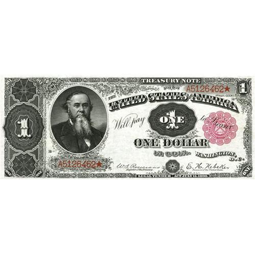<B>Fr. 349 $1 1890 Treasury Note Choice About New.</B></I> Nearly twice as scarce as the Fr. 347, this piece is beautifully margined, with bright color and excellent eye appeal.<BR><I>From The Plymouth Rock Collection</B></I>