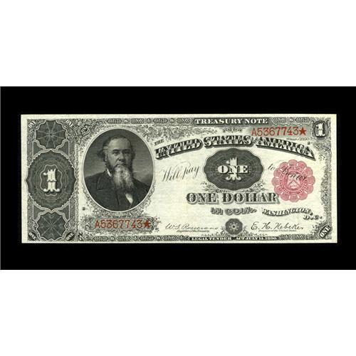 <B>Fr. 349 $1 1890 Treasury Note Very Fine.</B></I> The few folds that account for the grade are lessened as the paper is a touch flat. The color and the seal retains much of its original color.<BR><I>From The Bill and Kathy Stella Currency Collection</B></I><BR><BR><b>Shipping:</b> Coin/Currency (<a target="_blank" href="http://www.heritageauctions.com/common/shipping.php">view shipping information</a>)