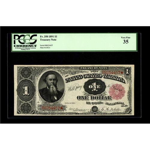 Fr. 350 $1 1891 Treasury Note PCGS Very Fine 35. Super