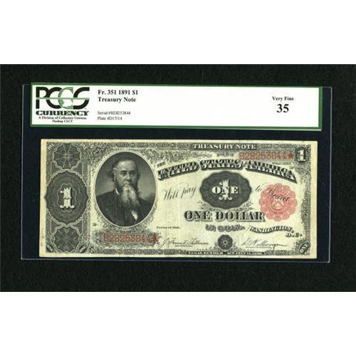 Fr. 351 $1 1891 Treasury Note PCGS Very Fine 35.