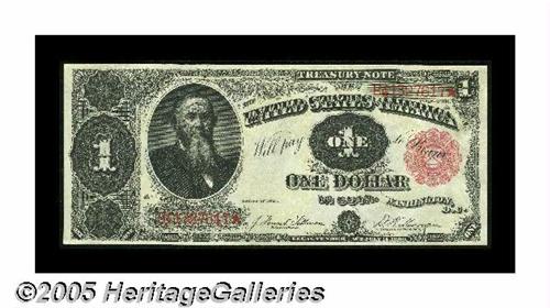 <B>Fr. 351 $1 1891 Treasury Note Superb Gem New.</B></I> This Stanton Ace has broad margins all around, perfect centering on both sides, and the type of deep original embossing more closely associated with Black Eagles than Treasury Notes. It's a truly superb piece that is certain to delight its new owner. Even though it is a relatively common type in most grades, it becomes quite scarce when an example as nice as this.