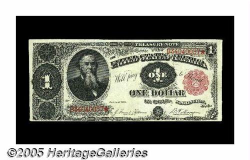 <B>Fr. 351 $1 1891 Treasury Note Very Fine.</B></I> Here is a Stanton Ace that would satisfy the collector looking for a bright mid-grade note.