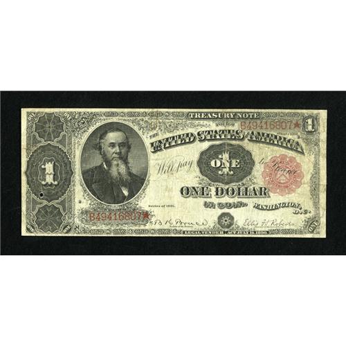 Fr. 352 $1 1891 Treasury Note Very Good. This av