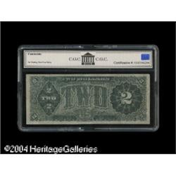 Fr. 353 $2 1890 Treasury Note CGC Fine 15. An at <B>Fr. 353 $2 1890 Treasury Note CGC Fine 15.</B></I> An attractive certified Treasury Note with substantial eye appeal for the grade. <BR><BR><B>Important notice:</B> Heritage usually auctions material at the rate of 200-250 lots per hour. On some occasions eBay Live bid software or the Internet may not be able to keep up with the pace of the auction. We recommend placing a realistic absentee bid now as insurance to avoid disappointment. Occasionally the auctioneer may eliminate or reject an eBay Live bid, and the auctioneer may also reopen a lot after the close of the eBay live bidding (usually because we missed an audience bid), and may reject your bid even if it shows you as the winning bidder. By bidding via eBay Live, you agree that Heritage may award the lot to another bidder at its sole discretion under the circumstances described above or any other reasonable circumstances. Since eBay bids are not shown to us until we open the lot on the floor, we treat those bids just like floor bids. In most cases the floor responds before the eBay bid is presented to us, due to Internet lag time, so for consistency we have made it a policy that floor bids are always considered first over tie eBay live bids. Also please note that all Heritage lots purchased through eBay Live carry a 20% Buyer's Premium. Please make sure you read the Terms and Conditions before you bid. This lot is being auctioned in conjunction with a live floor auction by Heritage Galleries & Auctioneers. All final auction and invoice information will be supplied by Heritage Galleries & Auctioneers, and all other information should be considered preliminary. Lot:17559