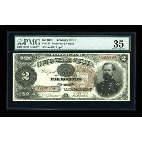 <B>Fr. 353 $2 1890 Treasury Note PMG Choice Very Fine 35.</B></I> A wonderful 1890 McPherson Deuce that is is quite colorful with plenty of eye appeal. A pleasing note in a desirable mid-grade.<B><BR></B></I><I>From The John Ameen Collection</B></I><BR><BR><b>Shipping:</b> Coins & Currency (<a target="_blank" href="http://www.heritageauctions.com/common/shipping.php">view shipping information</a>)