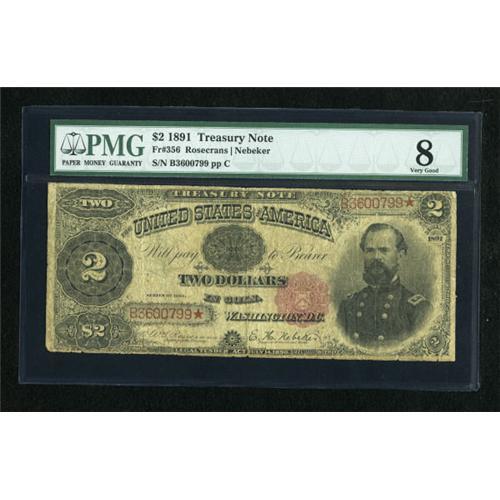 <B>Fr. 356 $2 1891 Treasury Note PMG Very Good 8.</B></I> The colors are still remarkably bold on this McPherson. <BR><I>From The Amelia Island Collection</B></I><BR><BR><b>Shipping:</b> Coins & Currency (<a target="_blank" href="http://www.heritageauctions.com/common/shipping.php">view shipping information</a>)