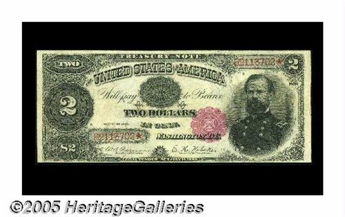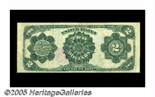 <B>Fr. 356 $2 1891 Treasury Note Very Fine.</B></I> This is the scarcest Open Back McPherson in the census, with this handsome mid-grade example exhibiting snappy paper, nice color, and wholesome edges.