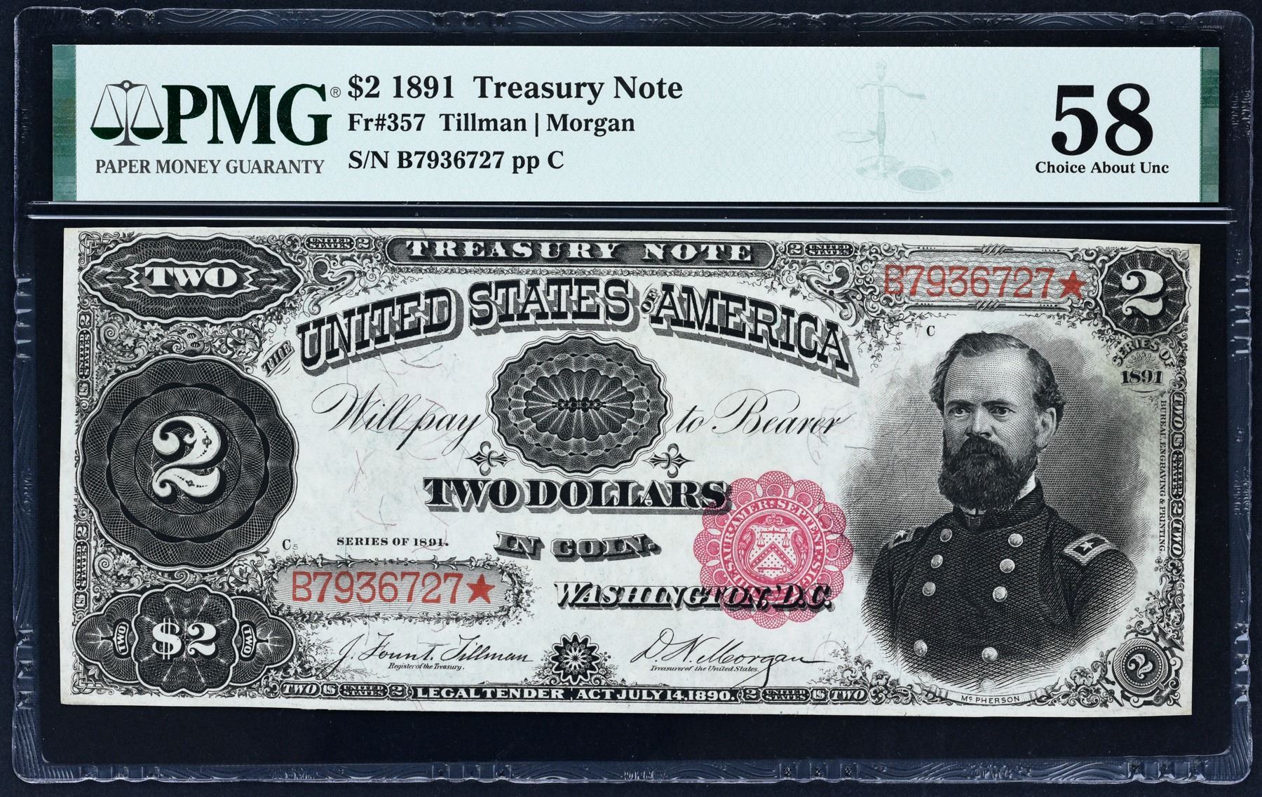 Title: Fr. 357 $2 1891 Treasury Note PMG About Uncirculated 58