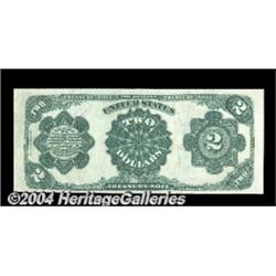 Fr. 357 $2 1891 Treasury Note Very Choice New. With a touch more bottom margin, this beautifully fresh, originally embossed, richly colored McPherson Deuce would be a Superb Gem. A lovely example of a scarce and popular type. <BR><BR><B>Important notice:</B> Heritage usually auctions material at the rate of 200-250 lots per hour. On some occasions eBay Live bid software or the Internet may not be able to keep up with the pace of the auction. We recommend placing a realistic absentee bid now as insurance to avoid disappointment. Occasionally the auctioneer may eliminate or reject an eBay Live bid, and the auctioneer may also reopen a lot after the close of the eBay live bidding (usually because we missed an audience bid), and may reject your bid even if it shows you as the winning bidder. By bidding via eBay Live, you agree that Heritage may award the lot to another bidder at its sole discretion under the circumstances described above or any other reasonable circumstances. Since eBay bids are not shown to us until we open the lot on the floor, we treat those bids just like floor bids. In most cases the floor responds before the eBay bid is presented to us, due to Internet lag time, so for consistency we have made it a policy that floor bids are always considered first over tie eBay live bids. Also please note that all Heritage lots purchased through eBay Live carry a 20% Buyer's Premium. Please make sure you read the Terms and Conditions before you bid. <BR><BR><B>IMPORTANT ANNOUNCEMENT ABOUT RESERVES:</B> Heritage now divulges all reserves on its web site 7 days before every auction. If you want to know whether the reserve on this lot has been met, and if not, what the reserve amount is, please visit this lot page on the HeritageCoin.com web site, or email: bid@HeritageGalleries.com