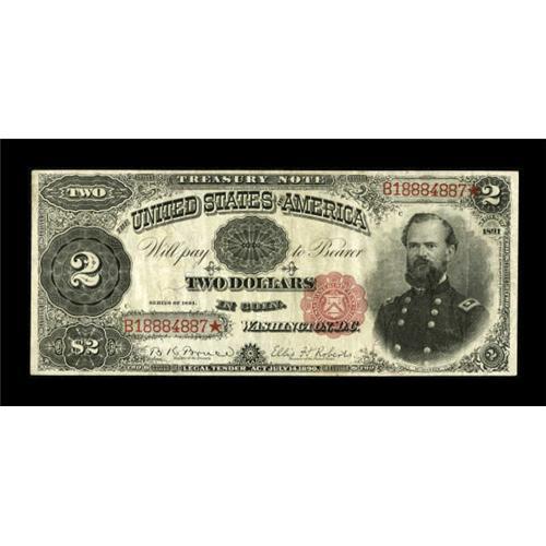 <B>Fr. 358 $2 1891 Treasury Note Very Fine.</B></I> Nice margins are noticed on this McPherson that was wet at one time.<BR><BR><b>Shipping:</b> Coins & Currency (<a target="_blank" href="http://www.heritageauctions.com/common/shipping.php">view shipping information</a>)