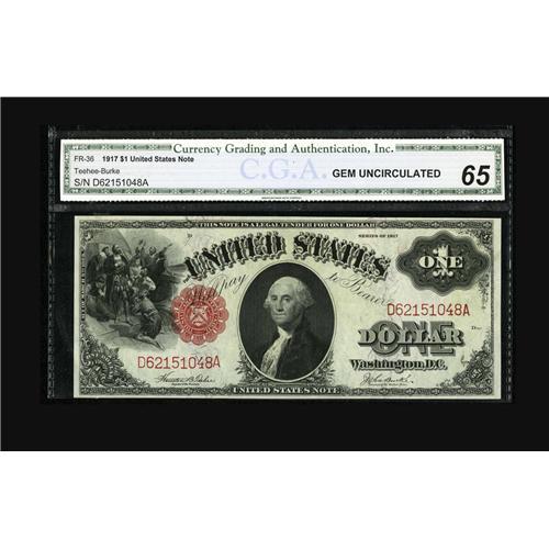 Fr. 36 $1 1917 Legal Tender CGA Gem Uncirculated 65. We