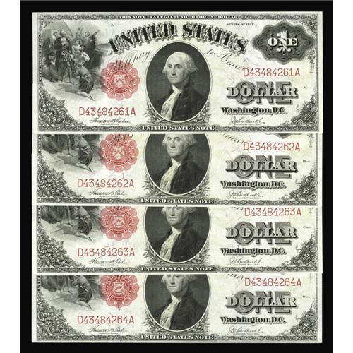 <B>Fr. 36 $1 1917 Legal Tender Cut Sheet of Four Very Choice New.</B></I> These gorgeous examples have been off the market for many years. Vivid inks and spacious margins highlight these consecutive beauties.<BR>