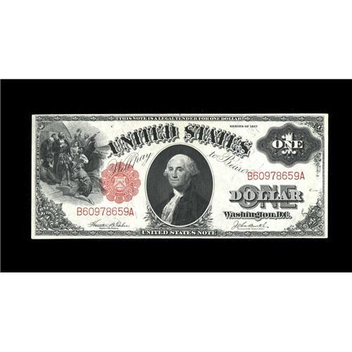 <B>Fr. 36 $1 1917 Legal Tender Extremely Fine-About New.</B></I> Dark inks and light handling highlight this nicely margined $1.