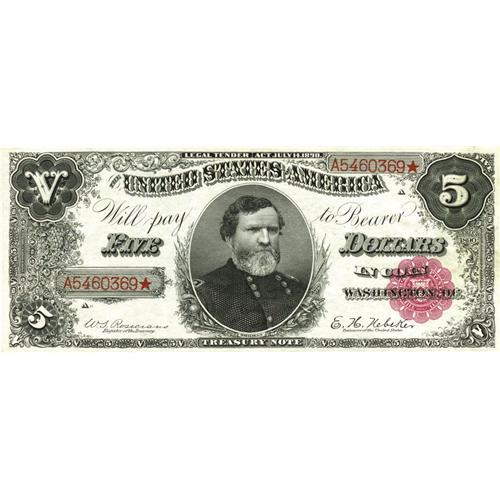 <B>Fr. 361 $5 1890 Treasury Note Gem Choice New.</B></I> Identical to the note above and five serial numbers removed from it.<BR><I>From The Plymouth Rock Collection</B></I>