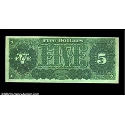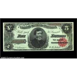 Fr. 361 $5 1890 Treasury Note Very Choice New. Good paper originality and ideal colors highlight this well margined General Thomas Fancy Back Five. If the back design were just a tad lower on the paper, this piece would qualify for the full Gem grade. Its eye appeal is terrific. Important notice: We expect to be auctioning lots at the rate of 200-250 per hour. Sometimes eBay Premier live bid software cannot keep up with that pace, so we strongly recommend that you place a realistic proxy bid now as insurance to avoid disappointment. Also please note that all Heritage/CAA lots purchased through eBay Premier carry a 20% Buyer's Premium. Please make sure you read the Terms and Conditions.