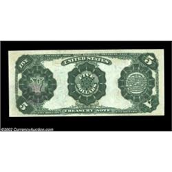 Fr. 362 $5 1891 Treasury Note Superb Gem New. Good paper originality, beautiful centering and razor-sharp printing all combine on this flashy Treasury Note. Fr. 362 is slightly scarcer than 363 and 364, but for some reason it seems to be far scarcer than those numbers in top grade. We've handled only a handful of true Gem 362's. Important notice: We expect to be auctioning lots at the rate of 200-250 per hour. Sometimes eBay Premier live bid software cannot keep up with that pace, so we strongly recommend that you place a realistic proxy bid now as insurance to avoid disappointment. Also please note that all Heritage/CAA lots purchased through eBay Premier carry a 20% Buyer's Premium. Please make sure you read the Terms and Conditions.