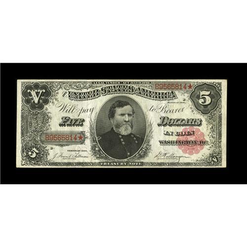 <B>Fr. 363 $5 1891 Treasury Note Extremely Fine.</B></I> Nice margins surround this vividly colored example on which the surfaces are a trifle flat.<BR><BR><b>Shipping:</b> Coin/Currency (<a target="_blank" href="http://www.heritageauctions.com/common/shipping.php">view shipping information</a>)