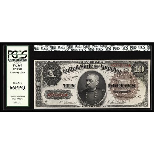 Fr. 367 $10 1890 Treasury Note PCGS Gem New 66PPQ. Fr. 367 $10 1890 Treasury Note PCGS Gem New 66PPQ