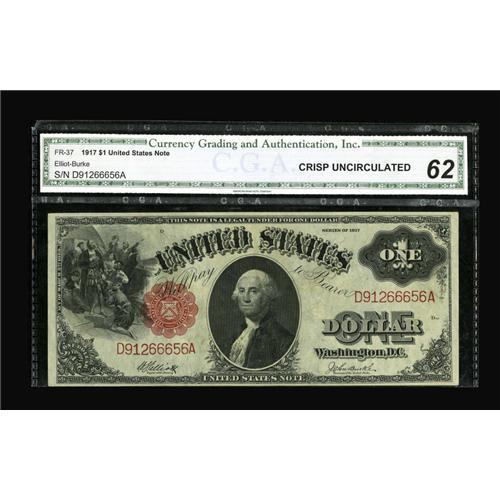 Fr. 37 $1 1917 Legal Tender CGA Crisp Uncirculated 62.