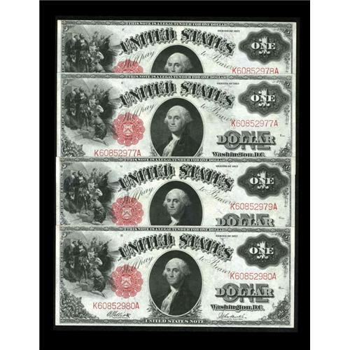 <B>Fr. 37 $1 1917 Legal Tender Cut Sheet of Four Choice New.</B></I> There are some minor maskings of a light stain in the upper-right corner on each of the notes, save for that, this purely original, well-embossed quartet comprises of an exceptionally nice cut sheet.