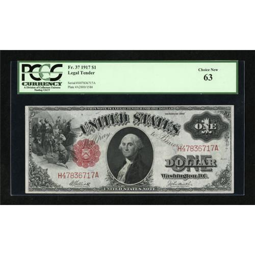 Fr. 37 $1 1917 Legal Tender PCGS Choice New 63.