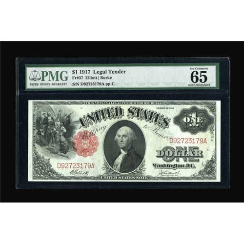 Fr. 37 $1 1917 Legal Tender PMG Gem Uncirculated
