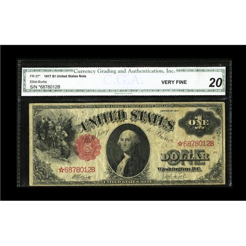 Fr. 37* $1 1917 Legal Tender Star CGA Very Fine 20. A l Fr. 37* $1 1917 Legal Tender Star CGA Very F