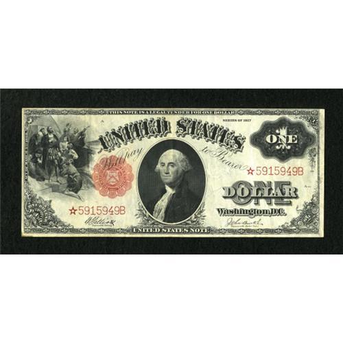 <B>Fr. 37 $1 1917 Legal Tender Star Note Very Fine-Extremely Fine.</B></I> A pleasing bright, crisp example that is has great eye appeal.<BR><BR><b>Shipping:</b> Coins & Currency (<a target="_blank" href="http://www.heritageauctions.com/common/shipping.php">view shipping information</a>)