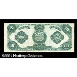 Fr. 370 $10 1891 Treasury Note Fine.The total census fo <B>Fr. 370 $10 1891 Treasury Note Fine.</B></I> The total census for this challenging number stands at roughly 70 pieces in all grades. Our example tonight appears to have been washed to remove circulation soil and the paper thus appears artificially clean. <BR><BR><B>Important notice:</B> Heritage usually auctions material at the rate of 200-250 lots per hour. On some occasions eBay Live bid software or the Internet may not be able to keep up with the pace of the auction. We recommend placing a realistic absentee bid now as insurance to avoid disappointment. Occasionally the auctioneer may eliminate or reject an eBay Live bid, and the auctioneer may also reopen a lot after the close of the eBay live bidding (usually because we missed an audience bid), and may reject your bid even if it shows you as the winning bidder. By bidding via eBay Live, you agree that Heritage may award the lot to another bidder at its sole discretion under the circumstances described above or any other reasonable circumstances. Since eBay bids are not shown to us until we open the lot on the floor, we treat those bids just like floor bids. In most cases the floor responds before the eBay bid is presented to us, due to Internet lag time, so for consistency we have made it a policy that floor bids are always considered first over tie eBay live bids. Also please note that all Heritage lots purchased through eBay Live carry a 20% Buyer's Premium. Please make sure you read the Terms and Conditions before you bid. This lot is being auctioned in conjunction with a live floor auction by Heritage Galleries & Auctioneers. All final auction and invoice information will be supplied by Heritage Galleries & Auctioneers, and all other information should be considered preliminary. Lot:17590