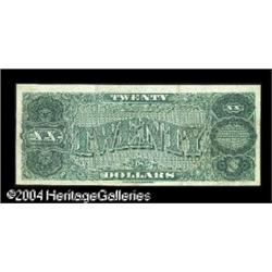 Fr. 372 $20 1890 Treasury Note Extremely Fine. An outst <B>Fr. 372 $20 1890 Treasury Note Extremely Fine.</B></I> An outstanding example of this elusive and seldom offered denomination in the Treasury Note series. Unlike lesser denominations, the fancy back reverse of the $20 Marshall is encountered more often than its Series 1891, less intricate counterpart. Nicely margined, with excellent color and no problems of any kind, the folds are nearly invisible from the face, and only slightly more visible on the ornate back. Like so many notes from the Malcolm Trask Collection, this piece has been off the market for half a century and is unlisted in any census data. Although around sixty notes of this Friedberg number are known, most are heavily circulated, with only a half-dozen or so top-end pieces. This note is easily in the top third of the census. Handsome and very popular.<BR><I>From the collection of Malcolm A. Trask.</B></I> <BR><BR><B>Important notice:</B> Heritage usually auctions material at the rate of 200-250 lots per hour. On some occasions eBay Live bid software or the Internet may not be able to keep up with the pace of the auction. We recommend placing a realistic absentee bid now as insurance to avoid disappointment. Occasionally the auctioneer may eliminate or reject an eBay Live bid, and the auctioneer may also reopen a lot after the close of the eBay live bidding (usually because we missed an audience bid), and may reject your bid even if it shows you as the winning bidder. By bidding via eBay Live, you agree that Heritage may award the lot to another bidder at its sole discretion under the circumstances described above or any other reasonable circumstances. Since eBay bids are not shown to us until we open the lot on the floor, we treat those bids just like floor bids. In most cases the floor responds before the eBay bid is presented to us, due to Internet lag time, so for consistency we have made it a policy that floor bids are always considered first over tie eBay live bids. Also please note that all Heritage lots purchased through eBay Live carry a 20% Buyer's Premium. Please make sure you read the Terms and Conditions before you bid. This lot is being auctioned in conjunction with a live floor auction by Heritage Galleries & Auctioneers. All final auction and invoice information will be supplied by Heritage Galleries & Auctioneers, and all other information should be considered preliminary. Lot:17591