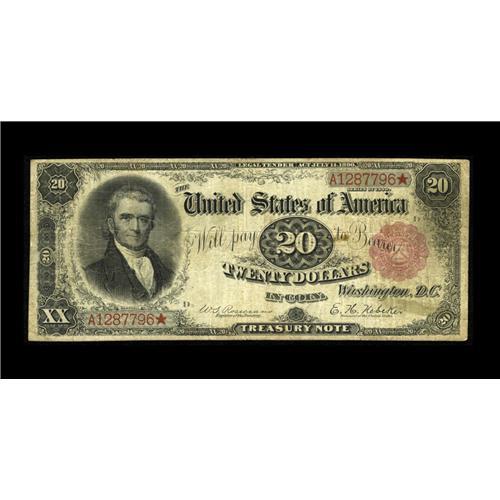 <B>Fr. 374 $20 1890 Treasury Note Fine.</B></I> This is the highest recorded serial number in the census and is in the middle of the pack regarding quality. It sets itself apart by being problem free, solidly margined, and an excellent example for the type.<BR><I>From The Bill and Kathy Stella Currency Collection</B></I><BR><BR><b>Shipping:</b> Coin/Currency (<a target="_blank" href="http://www.heritageauctions.com/common/shipping.php">view shipping information</a>)