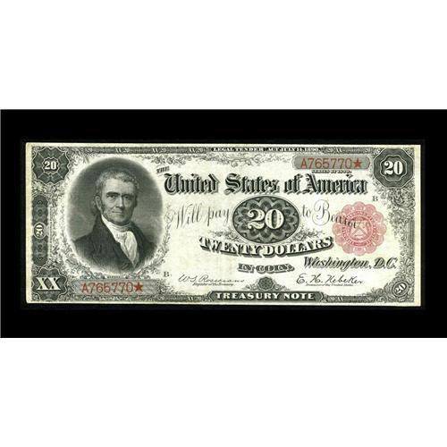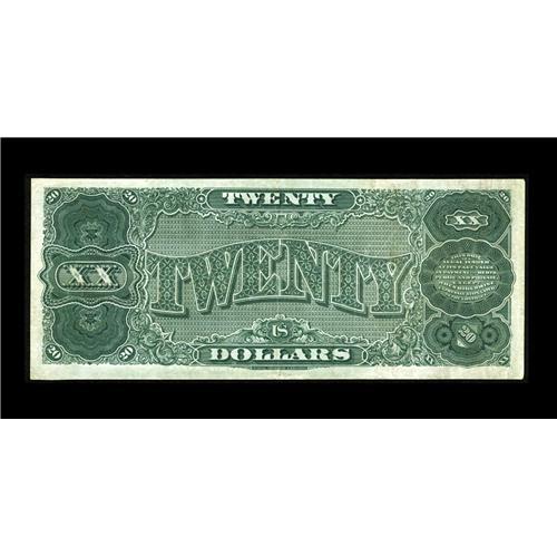 <B>Fr. 374 $20 1890 Treasury Note Very Fine-Extremely Fine.</B></I> Despite a moderate amount of circulation and having been wet at one time, the paper is still fully intact and the margins full. This is an elusive type with this example not previously reported to the census.<BR><I>From The Plymouth Rock Collection</B></I>