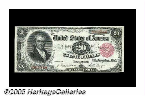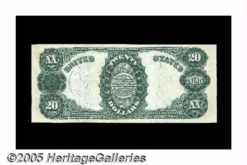 <B>Fr. 375 $20 1891 Treasury Note Gem New.</B></I> This note is from the middle-of-the-run that has supplied the only known uncirculated examples of this type. It's only prior auction appearance was in August of 2000 when it realized $13,700 in a Lyn Knight Sale. This type had been unavailable in high grade until a decade ago, when about a dozen Uncirculated notes unexpectedly appeared. John Marshall, whose portrait appears on this note, served as Chief Justice of the Supreme Court. He died in 1835. The portrait on the note was engraved by Charles Schlecht, from a oil done by Harry Inman. This note has wonderful margins, as well as original paper surfaces. A beautiful piece that is sure to illicit considerable bidder activity.