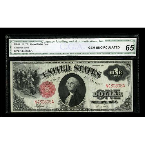 Fr. 39 $1 1917 Legal Tender CGA Gem Uncirculated 65. Go