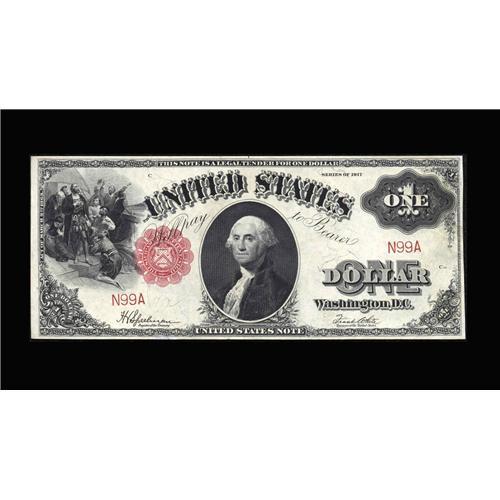 <B>Fr. 39 $1 1917 Legal Tender Choice New.</B></I> This attractive 1917 Ace has excellent margins, deep original embossing, and the neat two-digit serial number N99A.